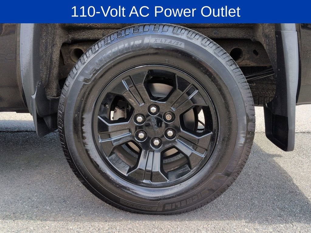 The exterior of this Sierra 1500 SLT exudes a bold and rugged presence, thanks to its Black paint finish and All Terrain X Package. The unique grille with body color surround and chrome accents, along with the bright sill plates and All-Terrain cluster, add a touch of refinement to the aggressive styling.